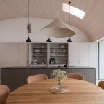 In einem Naherholungsgebiet in der Umgebung von Prag findet sich eine Hütte, die durch ihre ungewöhnliche, asymmetrische Form mit gekapptem Walmdach und zwei großen Dachfenstern überrascht. Architekt Martin Hajný hat die ursprünglich einfache Hütte aus den 1970er-Jahren umfassend renoviert und den Anforderungen der Besitzer entsprechend im Rahmen der engen Bauvorschriften als Low-Tech-Lösung konzipiert. Die Kombination aus Wellblech für Dach und Fassade sorgt gemeinsam mit den hellen, vorwiegend in Kiefernholz gehaltenen Innenräumen für einen angenehmen Kontrast und klassischen Hüttencharme.