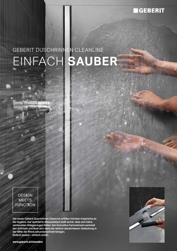 Die neuen Geberit Duschrinnen CleanLine erfüllen höchste Ansprüche an