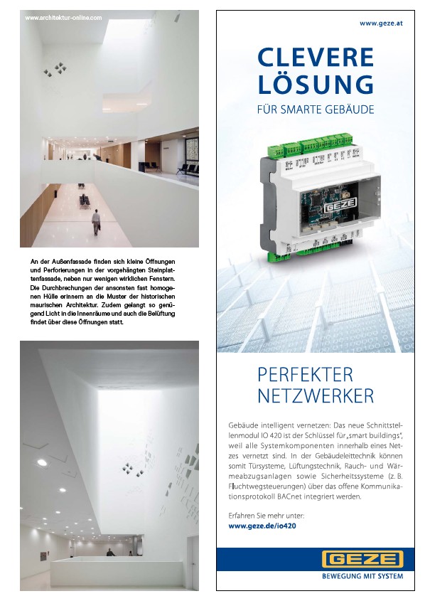und Perforierungen in der vorgehängten Steinplattenfassade,