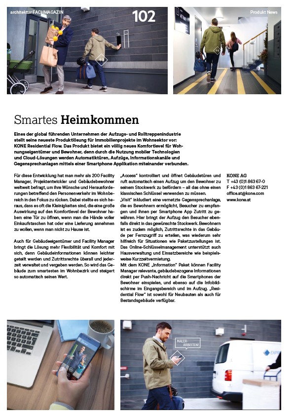 KONE Residential Flow. Das Produkt bietet ein völlig neues Komfortlevel für Wohnungseigentümer