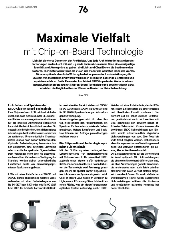 –spektren erlebbar. Beide Parameter kombiniert ERCO in perfekter Weise in seinem