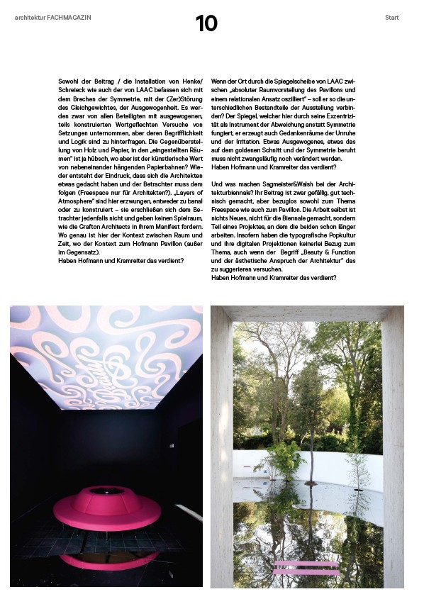 Freespace wie auch zum Pavillon. Die Arbeit selbst ist