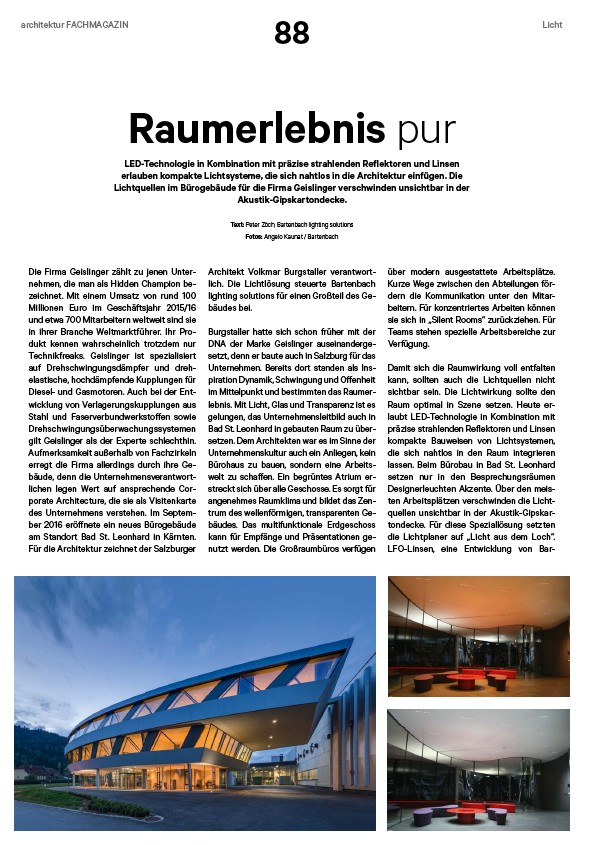 Lichtquellen im Bürogebäude für die Firma Geislinger verschwinden unsichtbar in der
