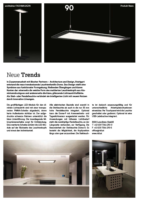 entstand die neue trendsetzende Leuchtenfamilie Dome. Das Design stellt eine