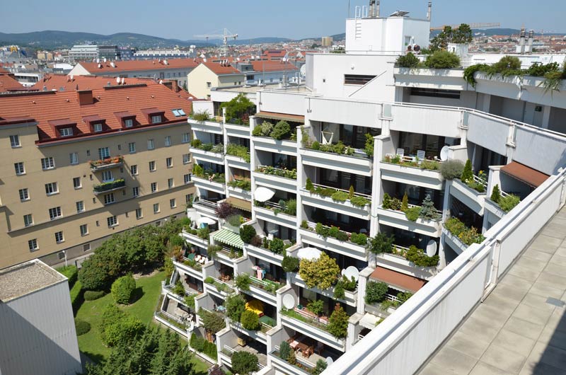 Wir müssen mehr mit der Natur arbeiten und sie nicht aus den Städten treiben. Das ist schon lange bekannt, das haben wir nur wieder vergessen. Begrünte Dächer und Fassaden sind dafür zu wenig und sind nur Greenwashing mit oftmals beträchtlichem Ressourceneinsatz. Wir sind dabei noch nicht am richtigen Weg. Es geht auch nicht darum, Gebäude mit Schaum einzupacken und dann zu begrünen, sondern für den Wohnbau Gebäudestrukturen nach den Wünschen und Bedürfnissen der BewohnerInnen und den ökologischen Erfordernissen für die grüne Stadt anzulegen. Die Typologie des Terrassenhauses wurde schon in den 20er Jahren des vorigen Jahrhunderts „erfunden“ und in den 1960er- und 70er Jahren dann auch europaweit weiter entwickelt und in wunderbaren Beispielen realisiert. Die Leute können dabei auf ihren Terrassen selbst anpflanzen, was sie haben möchten. Die Gebäude mit ihren hängenden Gärten verändern sich dann auch mit der Jahreszeit und durch die Aktivitäten der Bewohner. Das ist nicht nur ein ästhetischer Mehrwert, sondern vor allem auch ein ökologischer für die Stadt und heute im Kontext des Klimawandels wichtiger denn je.