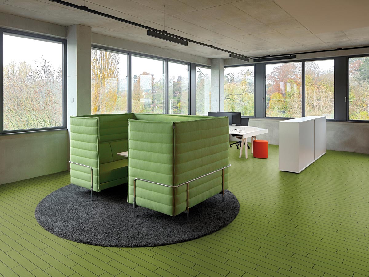 Gewebte Strukturen, subtile Texturen und ausdrucksstarke Farben wie Moosgrün, Gelb oder Saphirblau bieten Architektinnen und Architekten völlig neue Möglichkeiten, Atmosphäre und Identität in Räume zu bringen. Fischgrätverlegung in Gras- oder Zebranooptik – jede Fläche wird zur Leinwand für kreative Konzepte.
