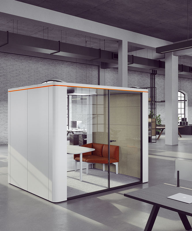 Mitarbeiter klagen vor allem über akustische Einschränkungen und fehlende Privatsphäre. Mit den neuartigen Office-Cubes ist professionelle und wirkungsvolle Abhilfe möglich. Die in den Größen S, M und L erhältlichen Cubes bieten das perfekte Umfeld für Besprechungen und Meetings, konzentriertes Arbeiten oder einfach zum Entspannen. Sie lassen sich aufgrund ihrer ausgekügelten Dimensionen in bereits vorhandene Bürolandschaften integrieren und bieten auch für den klassischen Einsatz wie Brainstormings und Schulungen genügend Raum für Bewegung und Interaktion. Auch an die oft fehlenden Ablageflächen für Laptop, Blocks und Stifte wurde gedacht und selbst die Innenwände lassen sich als vertikale, beschreibbare Flächen nutzen.