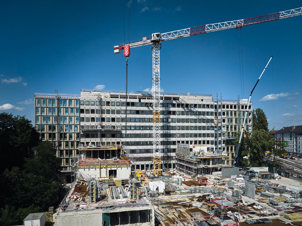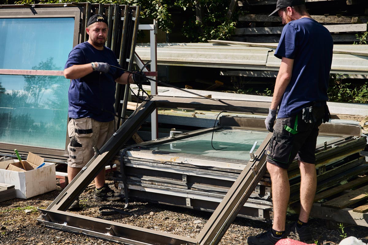 Die Rückbauarbeiten erfolgten unter beengten Bedingungen in der Innenstadt „just-in-time“. Die alten Fassadenelemente wurden sortenrein getrennt und anschließend in die Recyclingwerke überführt. Dort entstanden neue Profile und Verglasungen, die im Sinne der Kreislaufwirtschaft zu neuen Fassadenelementen weiterverarbeitet wurden. Zum Einsatz kam dabei Hydro CIRCAL 75R – eine Aluminiumlegierung mit besonders geringem CO2-Fußabdruck. „Die Legierung besteht zu mindestens 75 % aus recyceltem End-of-Life-Aluminium und verfügt über einen CO2-Fußabdruck von nur 1,9 kg CO2 pro kg Aluminium“, erläutert Sebastian Schäfer, Key Account Manager bei WICONA.