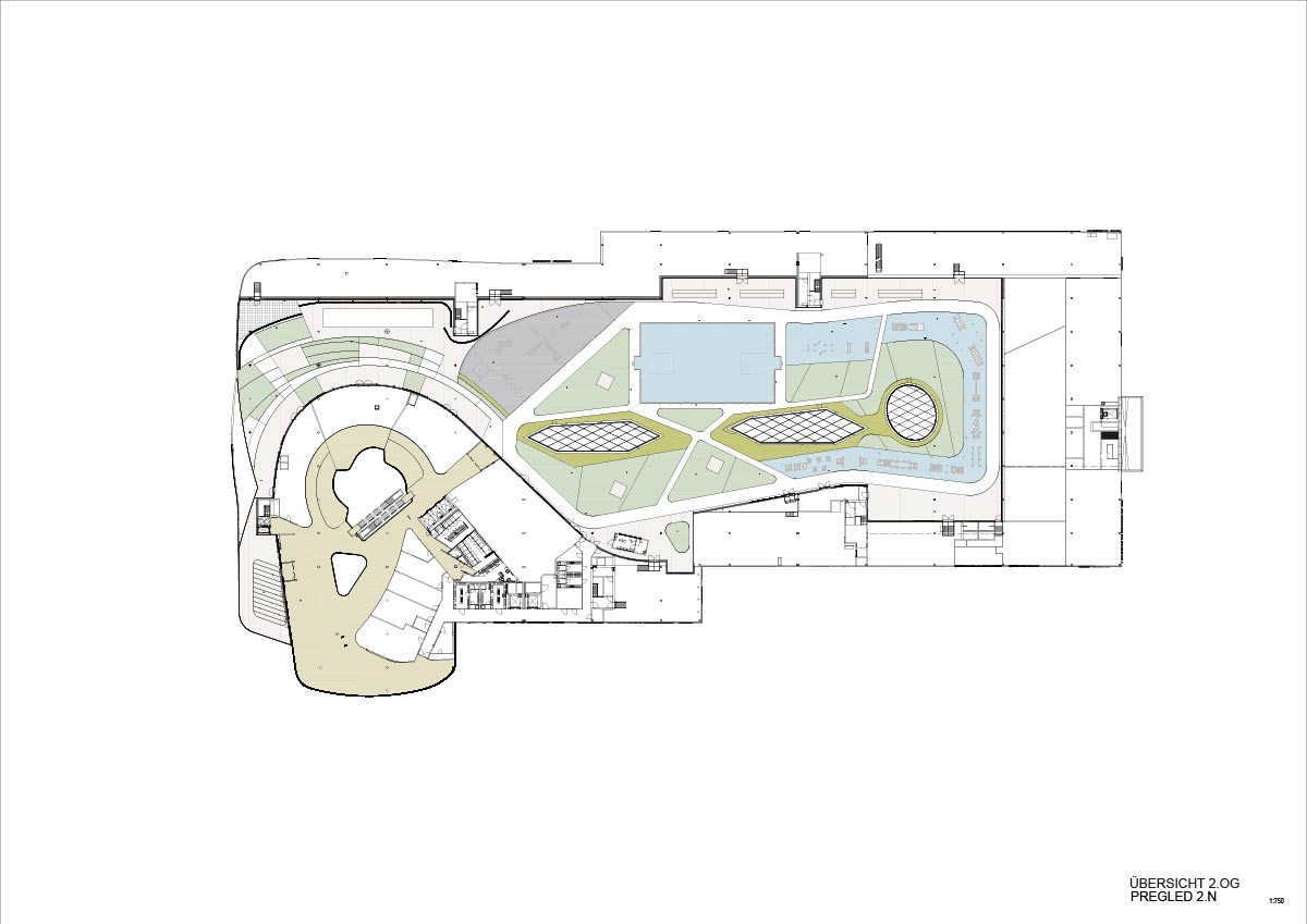Auch die Gestaltung des Activity Roofs ist Teil des Energiekonzepts. Die Begrünung des Dachs soll die verbaute Fläche kompensieren und der Stadt ein wenig Natur zurückgeben. Ein System zur Regenwassernutzung hält den Wasserverbrauch möglichst gering. Es speist die Bewässerung der Pflanzen und trägt auch zur zusätzlichen Kühlung des Retailcenters bei. Mit seinem vielseitigen Angebot lädt das Dach nicht nur zum Dinieren mit Blick über Ljubljana ein, sondern bietet mit Kinderspiel- und Sportplatz sowie Fitness- und Parcours-Areal unterschiedliche Möglichkeiten zur körperlichen Ertüchtigung. Ein Pumptrack vor der Mall komplettiert die Optionen der Freizeitgestaltung.