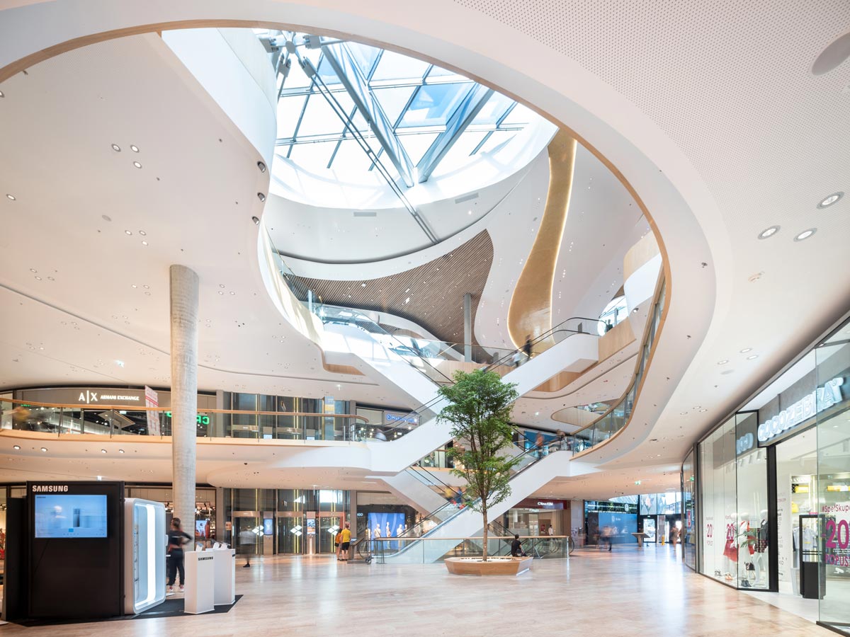 ATP Architekten realisierten mit ALEJA das modernste Shoppingcenter Sloweniens. Besonderer Fokus des Projekts liegt auf den Themen Nachhaltigkeit und Energieeffizienz. Das Ergebnis ist ein intelligenter Bau, der bereits von außen sämtliche Blicke auf sich zieht. Seine geschuppte Haut ist Teil des umfassenden Energiekonzepts, welches nicht nur das Raumklima reguliert, sondern auch einen Hingucker bildet.