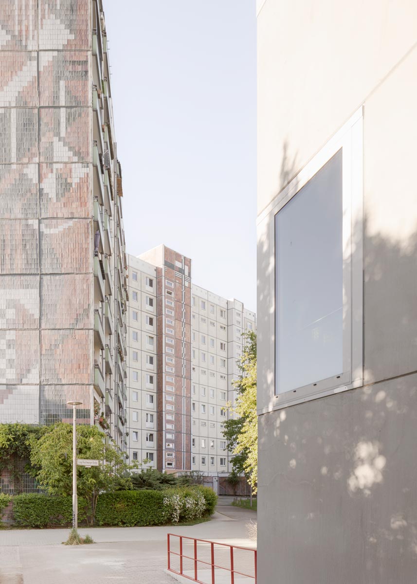 In seiner Konsequenz formuliert das Projekt einen präzisen Beitrag zur Frage, wie urbaner Raum in peripheren Großsiedlungen entstehen kann. Die Lion-Feuchtwanger-Straße 61 zeigt, dass Nachverdichtung nicht zwingend in neue Monolithen mündet, sondern durch robuste Systeme erzeugt werden kann, die Wandelbarkeit, soziale Interaktion und räumliche Klarheit verbinden. Gerade in einem Umfeld, in dem Wohnungsbau allzu oft an Kostendruck und Standardisierung scheitert, liefert das Projekt ein architektonisches Argument für urbane Vielschichtigkeit: Sie entsteht nicht trotz des seriellen Bauens, sondern aus seiner strukturellen Intelligenz heraus.