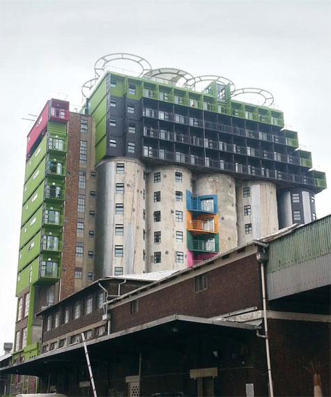 Um dringend notwendige Wohnmöglichkeiten für Studenten in Johannesburg zu schaffen, hat der Immobilienentwickler Citiq ungenutzte Getreidesilos in brauchbare Studentenwohnungen verwandelt. Die ehemaligen Silos ‚Mill Junction‘ enthalten nun 375 individuelle Appartements, zusätzlich zu Räumen wie Bibliotheken, Aufenthaltsbereiche und Computerräume.